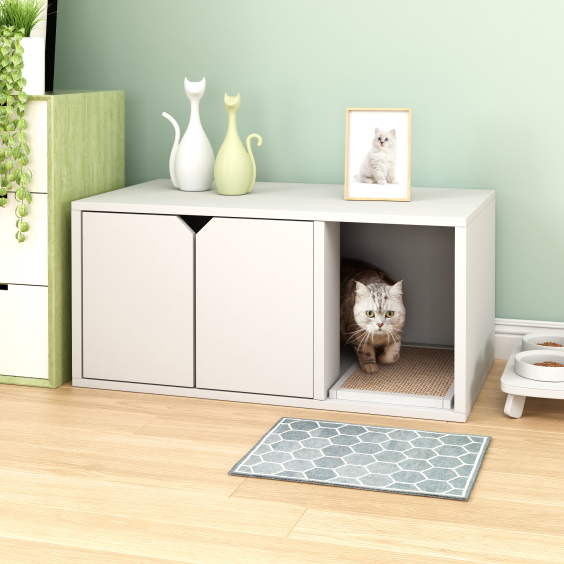 I was very surprised at how easy it was to put together. It’s also very light weight. My cats like it. It’s easy to clean and hides the litter box very well.