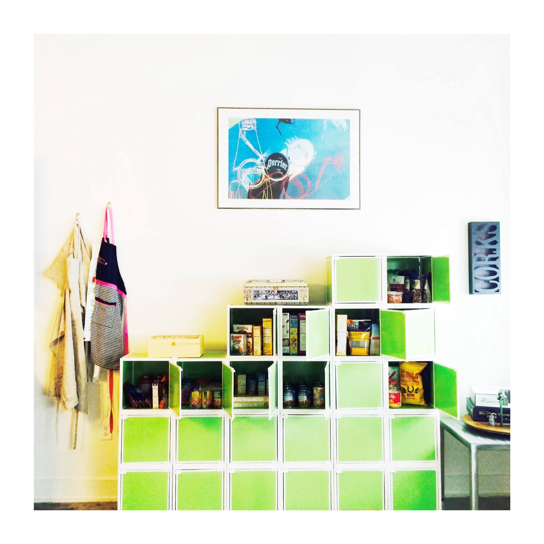 Containers If you're stumped about what to use for organizing smaller items in the kitchen and bathroom, try re-purposing old shoe boxes, cans that held soups, and jars that held pickles and spaghetti sauces.